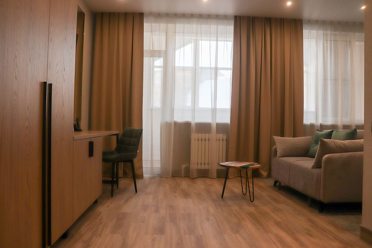 В интерьерах использовались природные материалы, спокойная цветовая палитра и образы, отсылающие к Алтаю – реке Катунь, лесу, горному ландшафту. В оформлении читается актуальный скандинавский минимализм: сдержанный, функциональный, воздушный. Отдельное внимание уделено эргономике: хранению вещей и удобству длительного проживания.