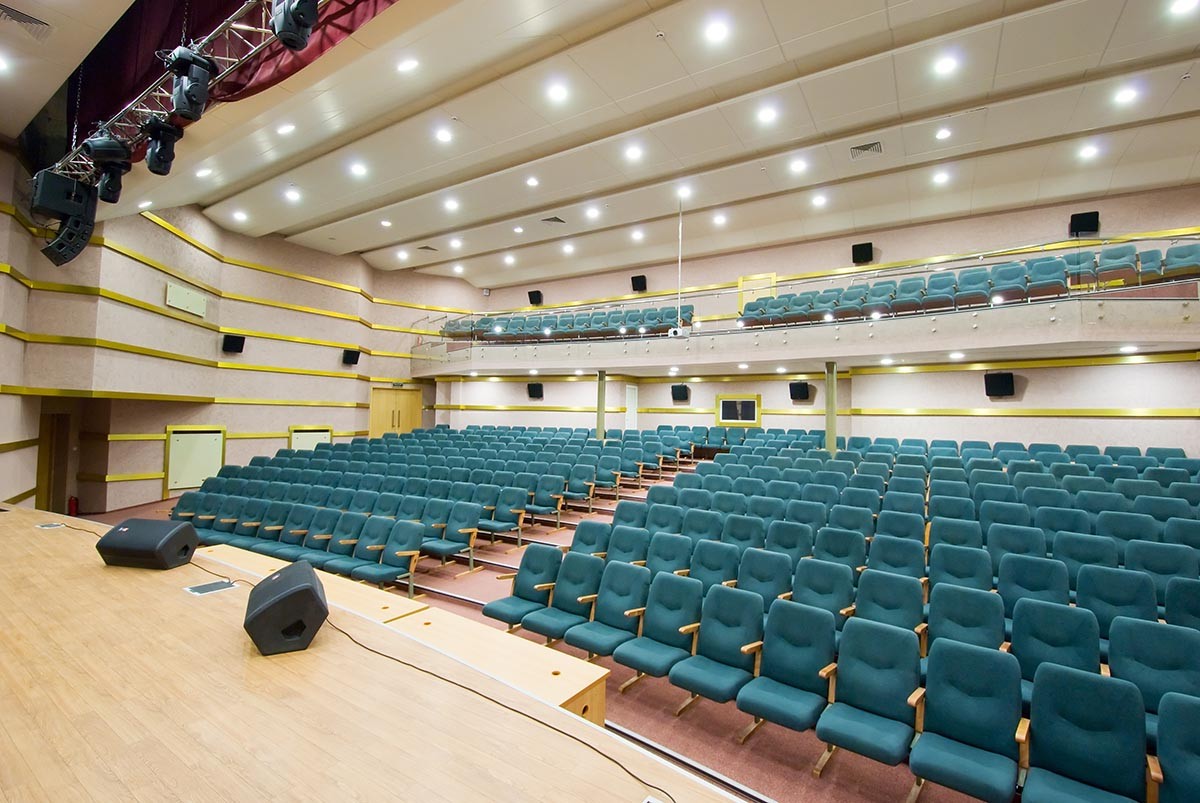 Зал предназначен для проведения крупных совещаний, конференций, симпозиумов самого высокого уровня, премьерных показов фильмов, организации концертов, конкурсов.
