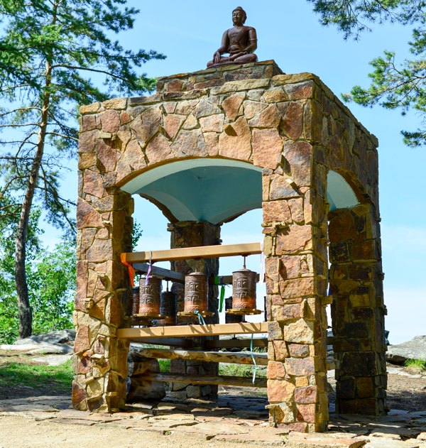 Достопримечательность состоит из нескольких символов: буддийской ступы, статуи Будды Медицины из оникса, текстов, в которых изложено буддийское Учение, и вращающихся молитвенных барабанов. Считается, что все это в комплексе дает возможность получить благословение ума, тела и речи.