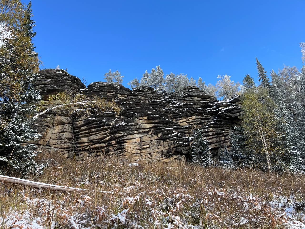 По дороге до «Малой Синюхи» мы увидели еще одну природную достопримечательность – скалы «Китайская стена». Протяженностью они около километра.