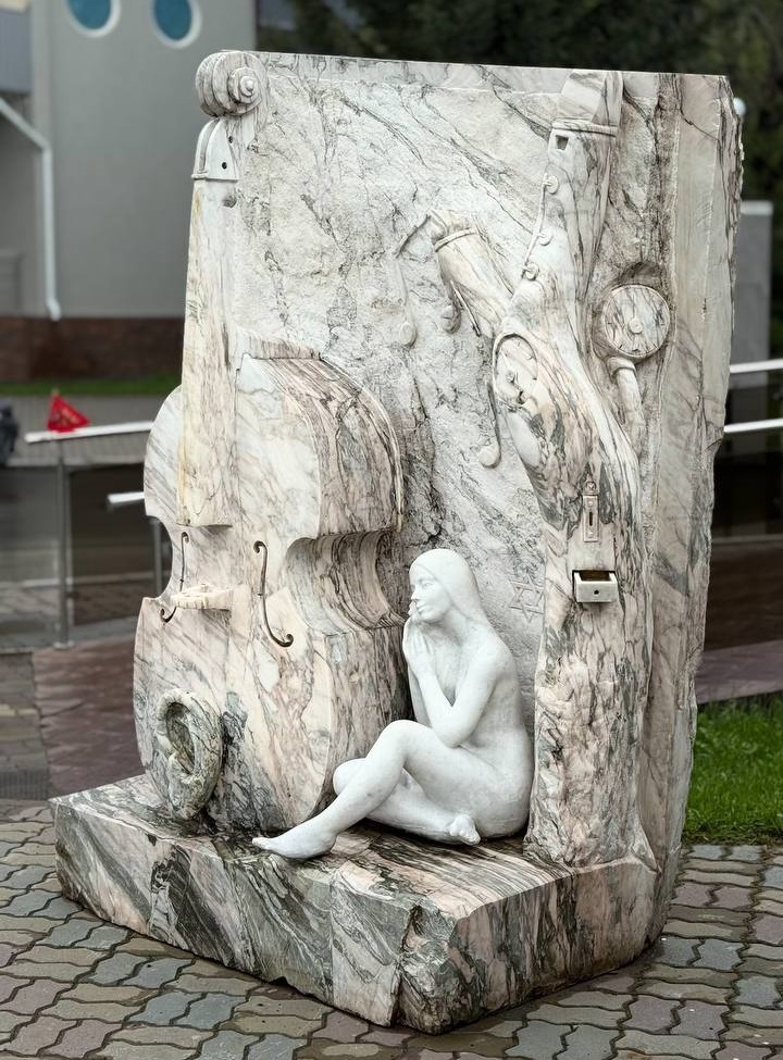Мы начали прогулку с центральной улицы – Академика Мясникова. Затем свернули на курортную улицу Славского, наше внимание привлекла большая площадка летней террасы ресторана «Мишель», украшенная мраморными арт-объектами и цветами.