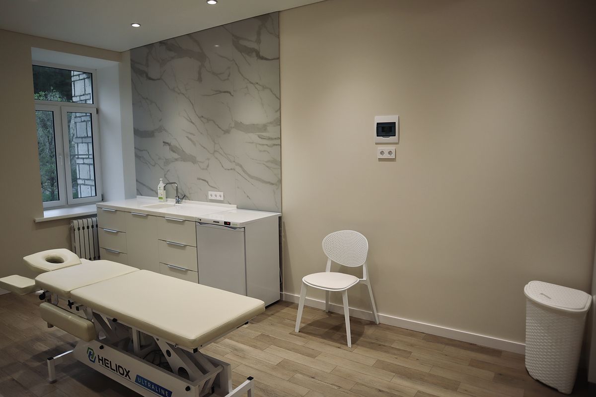 Всего в лечебном отделении санатория обновили два кабинета – врачей невролога и рефлексотерапевта. У каждого из специалистов отдельные процедурный кабинеты. Кроме того, процедурный кабинет рефлексотерапевта расширен и зонирован, то есть одновременно получать процедуры могут два пациента в разных комнатах, отделенных и закрывающихся дверью.