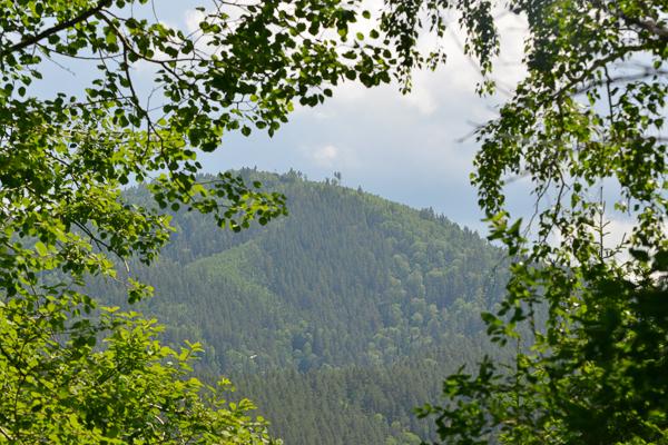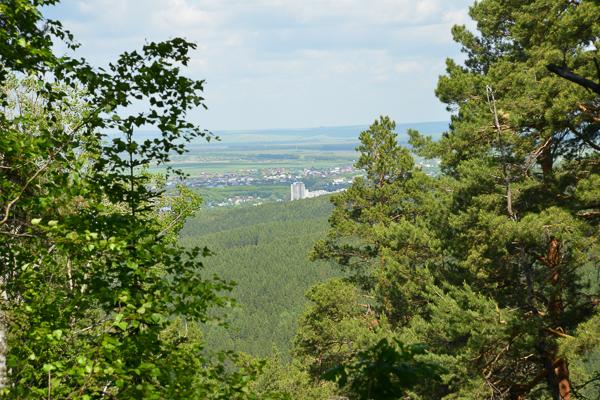 С левой стороны периодически открываются панорамные виды. Здесь еще видно город, раскинувшийся рябью за большим пароходом-высоткой…