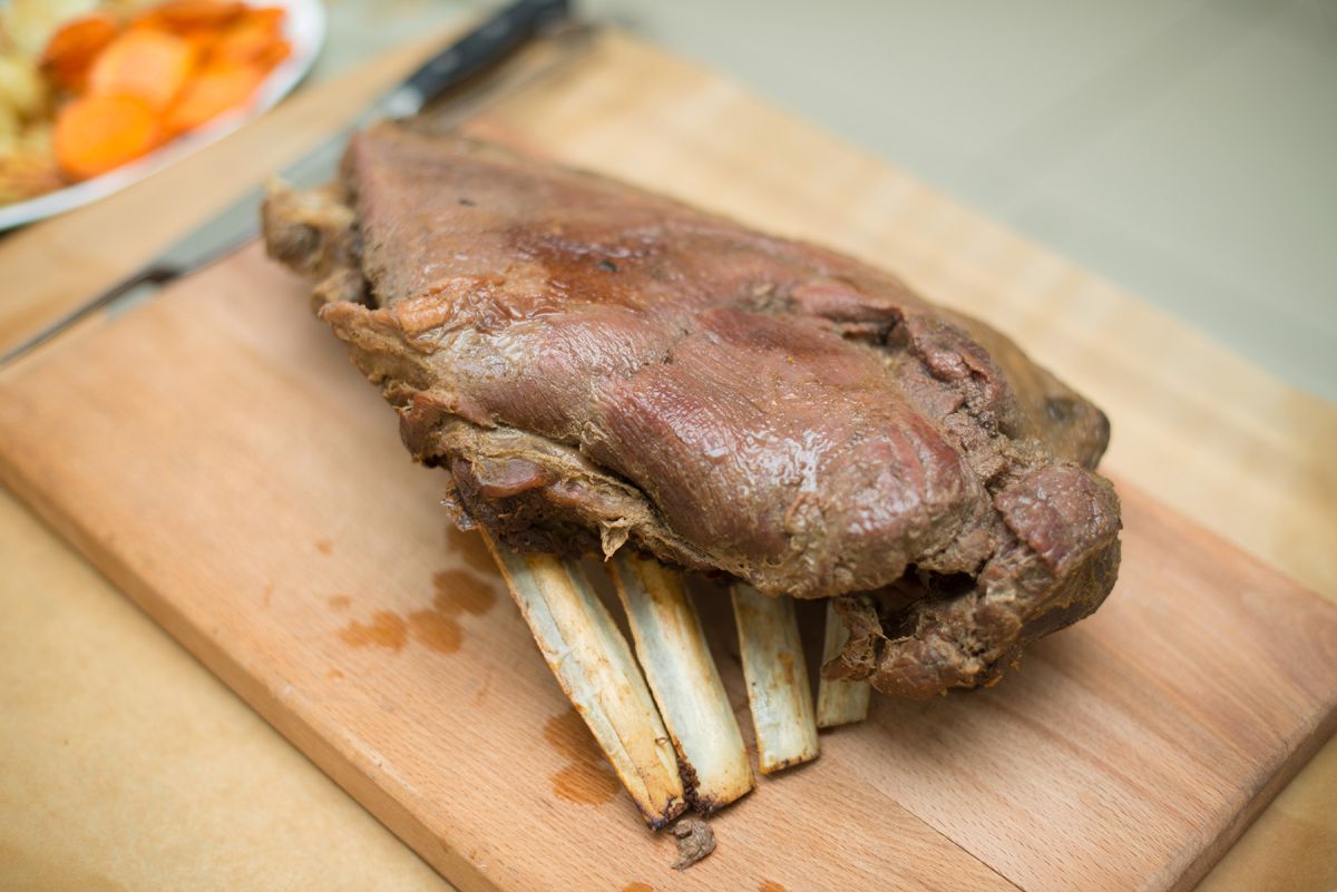 Промойте части марала и поставьте вариться бульон. После закипания, убавьте температуру, готовьте под крышкой 3-3,5 часа.