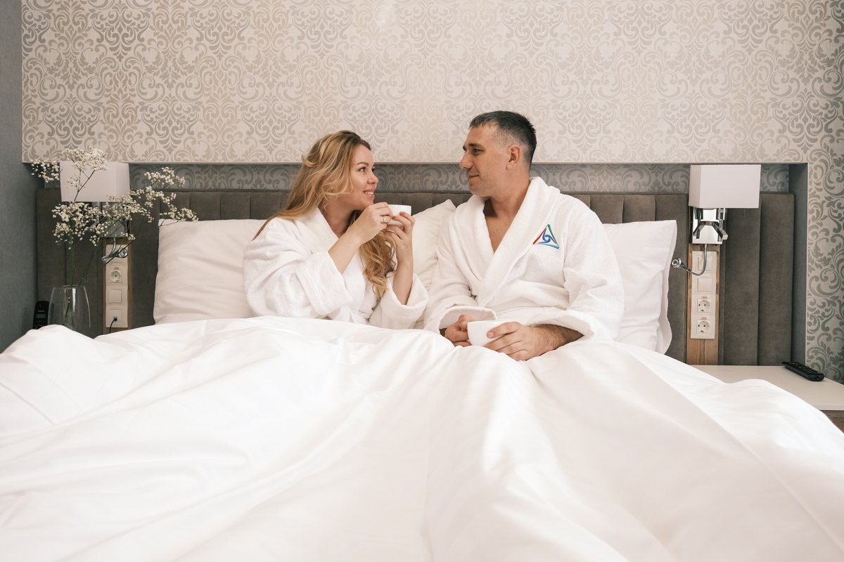 Для тех, кто собирается приехать с любимым человеком — идеально подойдут номера категорий «Семейный комфорт» или «Престиж». Первый – компактный и уютный, где есть самое необходимое для двоих. Второй — относится к номерам повышенной комфортности, что отражено в интерьере, площади номера и наборе услуг, входящих в пакет. Также гостям, остановившимся здесь, доступны премиальные услуги: специальные программы лечения и питание в зале премиум.