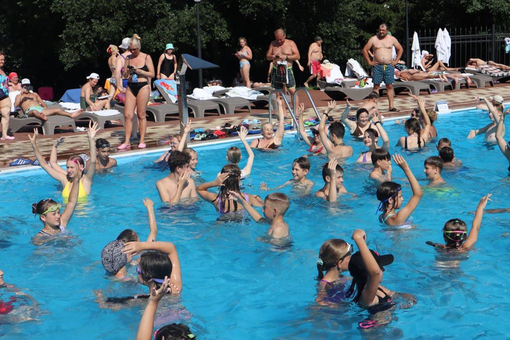 Танцевальный флэшмоб, уроки аквааэробики, пионербол на воде… Увенчала праздник пенная вечеринка.