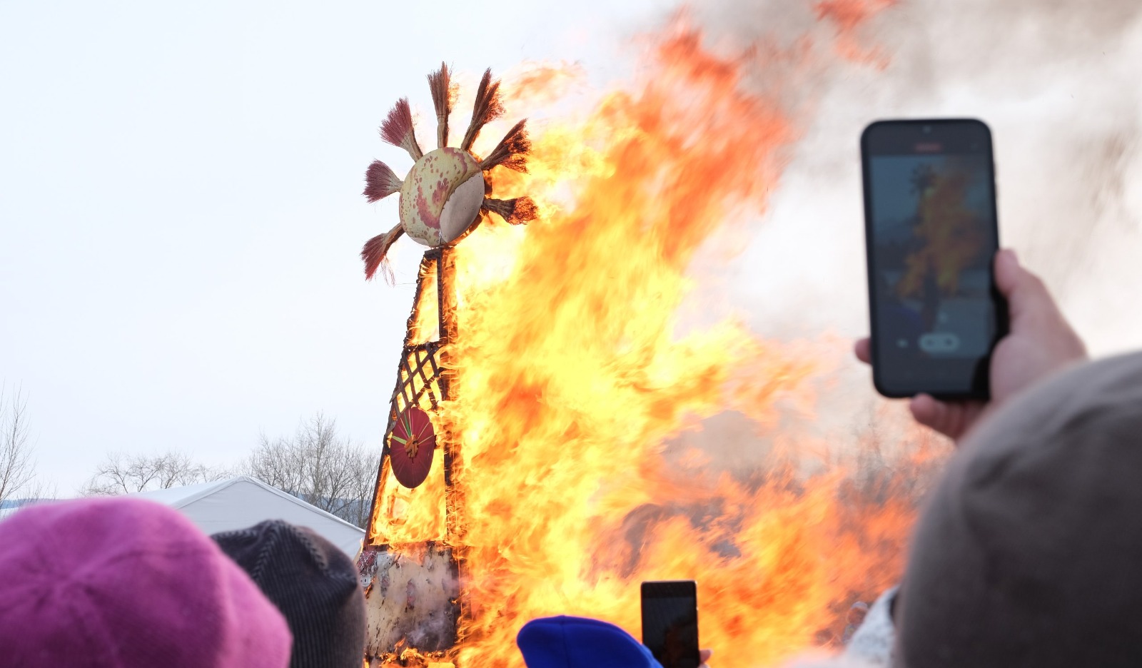 Главное шестиметровое масленичное чучело массово сожгут в финале фестиваля. Кстати, модульное чучело изготавливали в прошлом году гости гуляний. Эта традиция появилась в 2023 году. И теперь на каждый фестиваль сжигают прошлогоднее чучело.